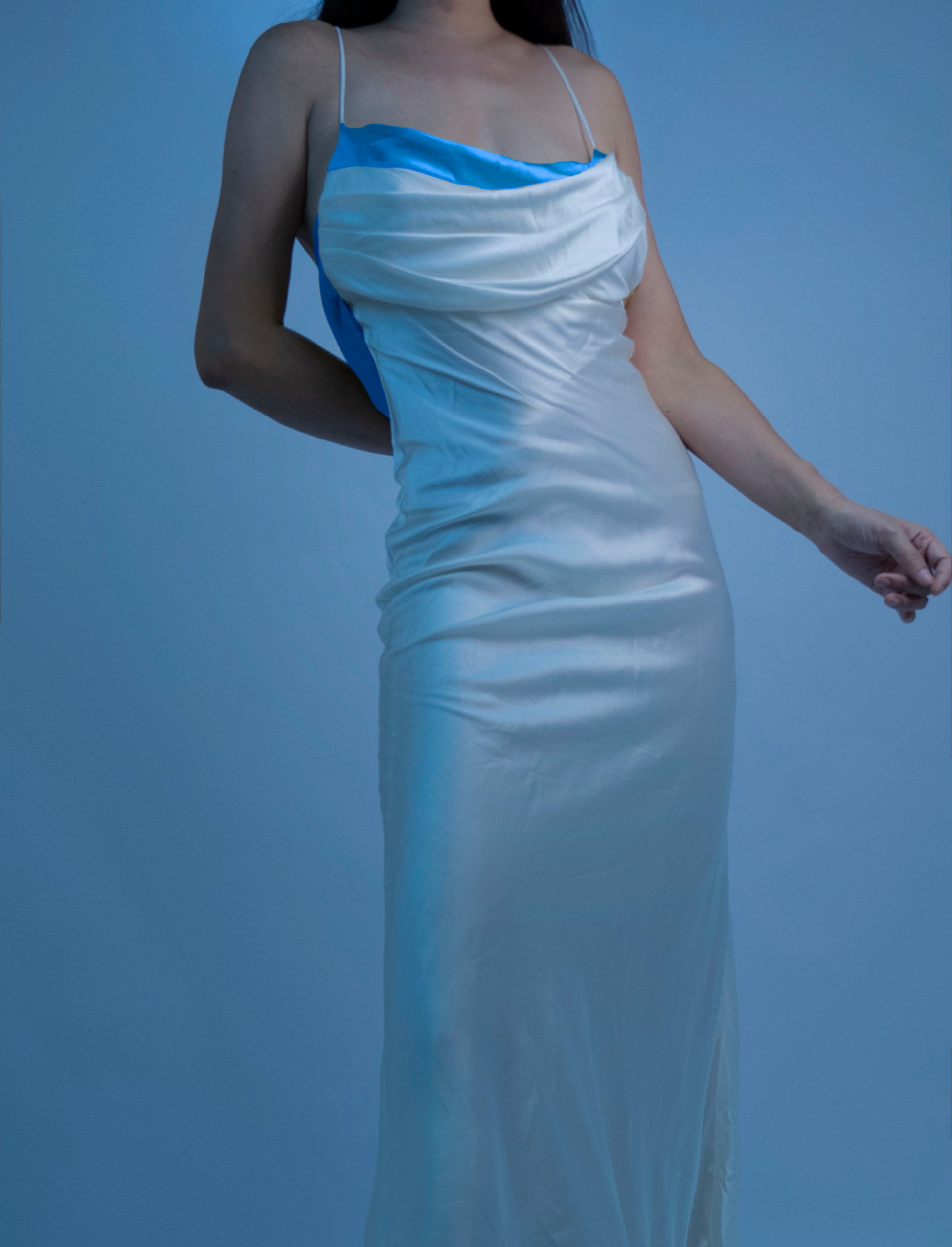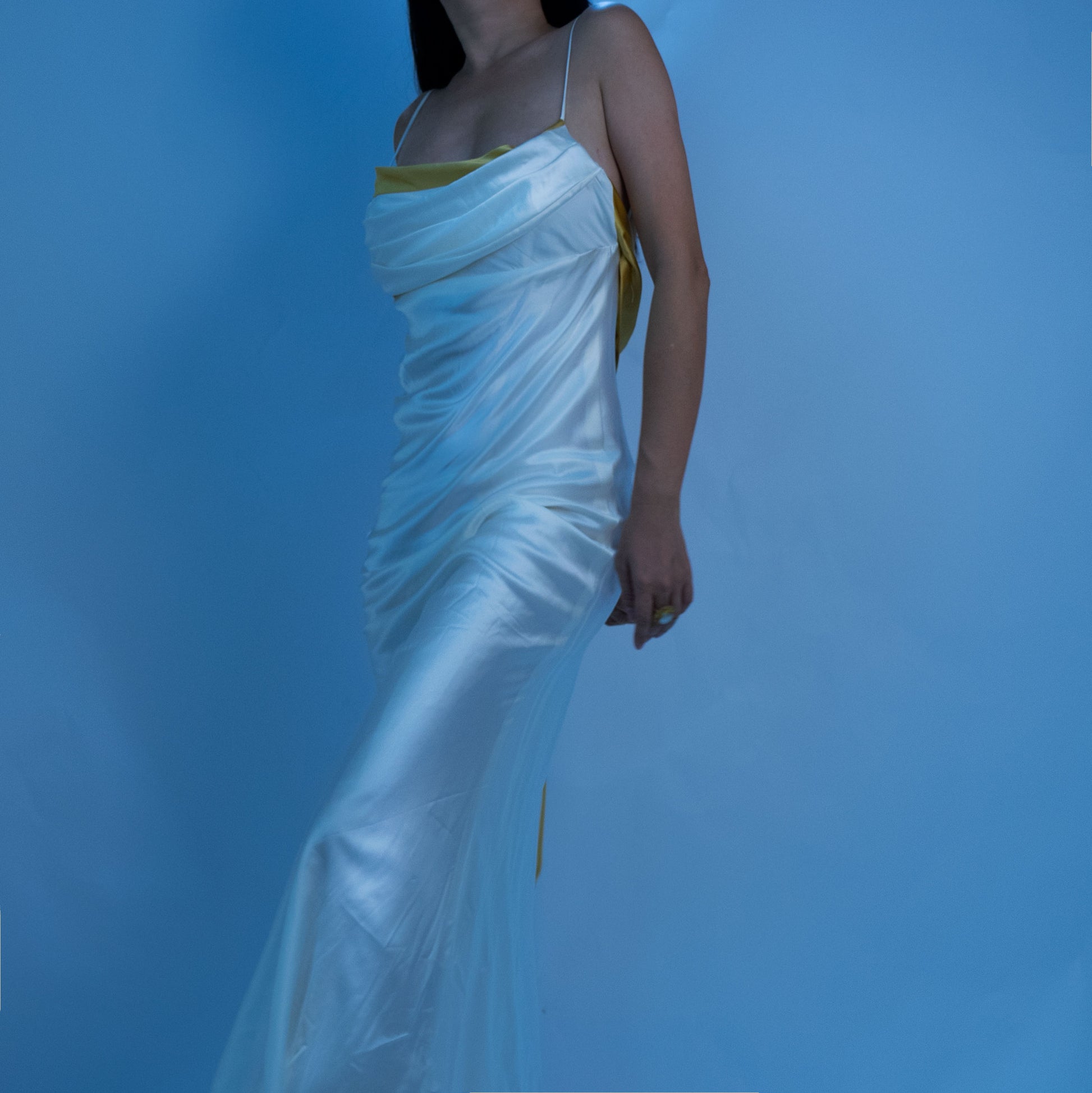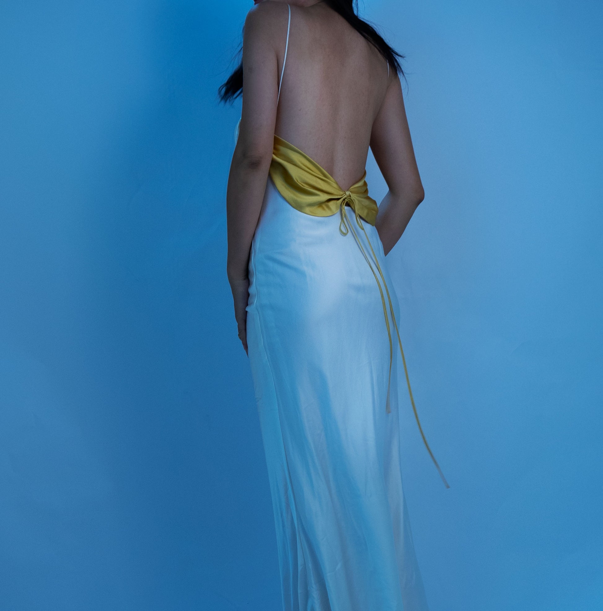 Designed with a draped butterfly shape back, it's made from mulberry silk with draped bust detailing and soft lining, and hidden adjustable straps to create the perfect fit.