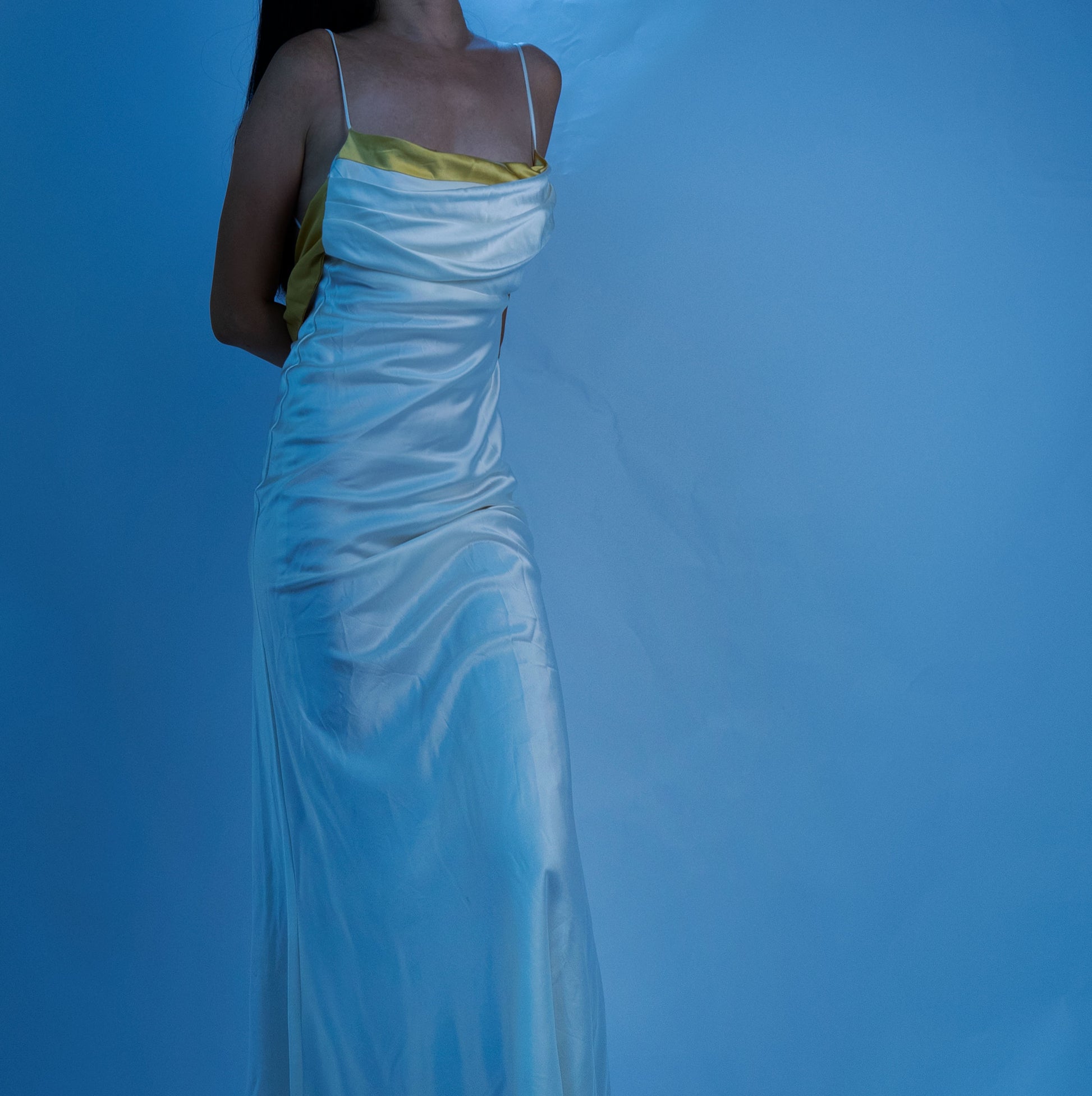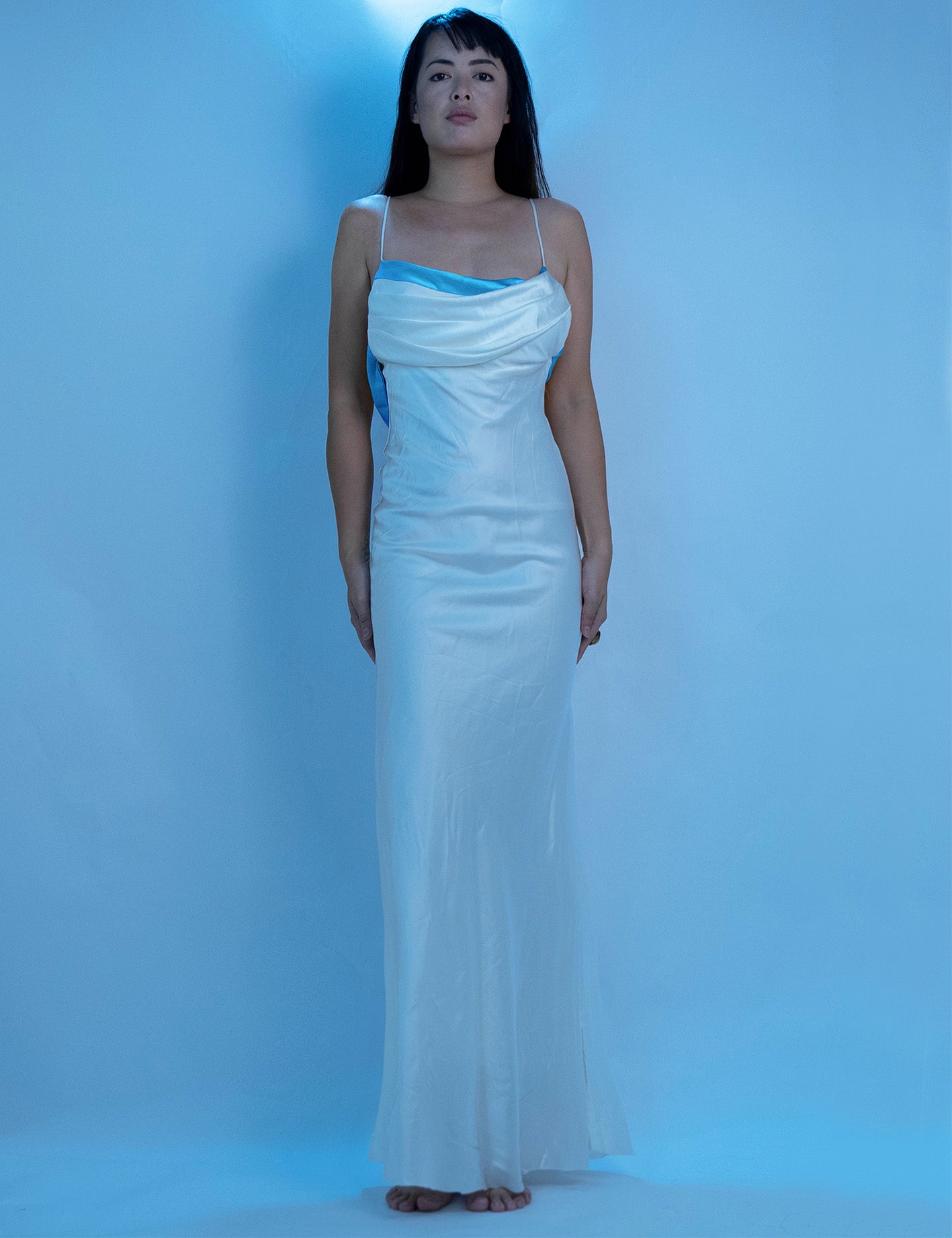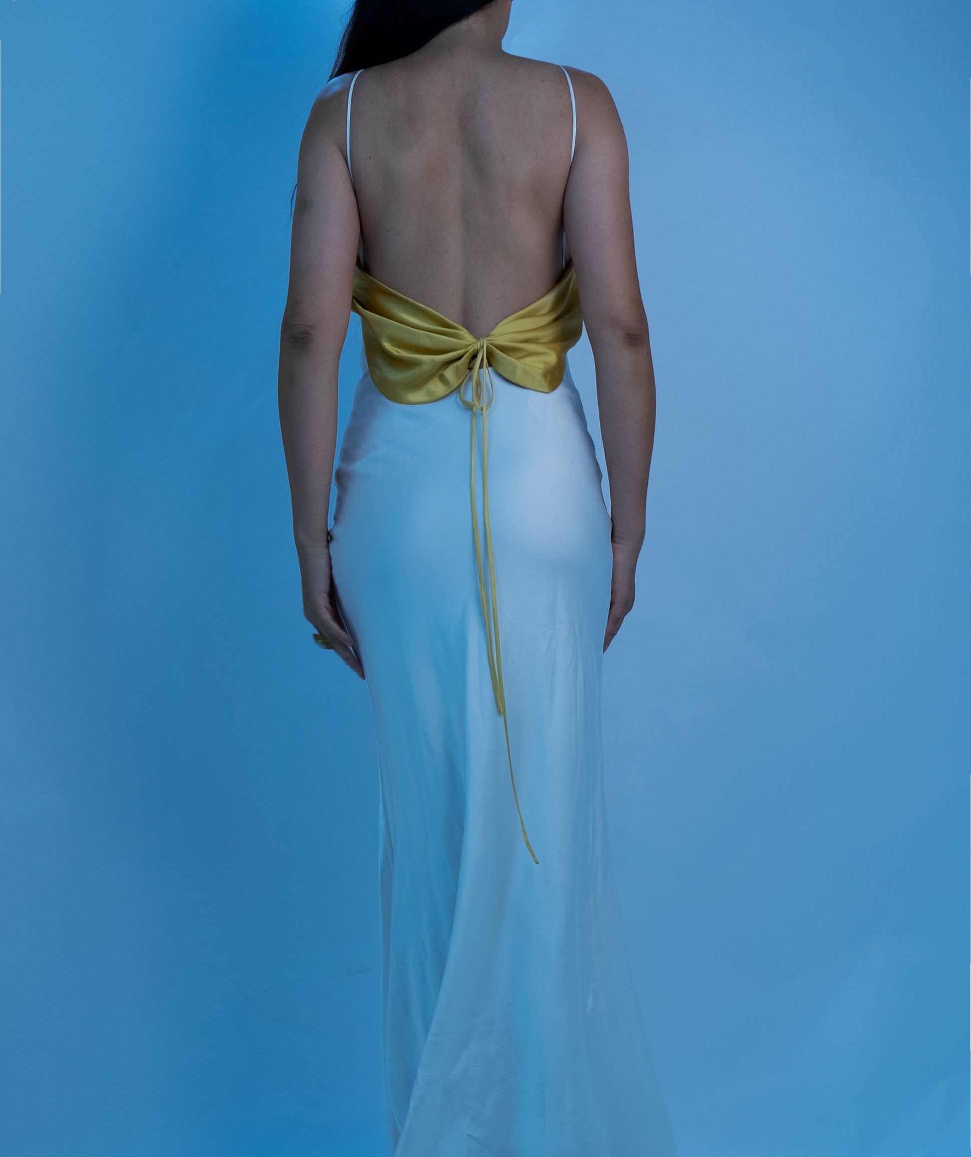 Designed with a draped butterfly shape back, it's made from mulberry silk with draped bust detailing and soft lining, and hidden adjustable straps to create the perfect fit.