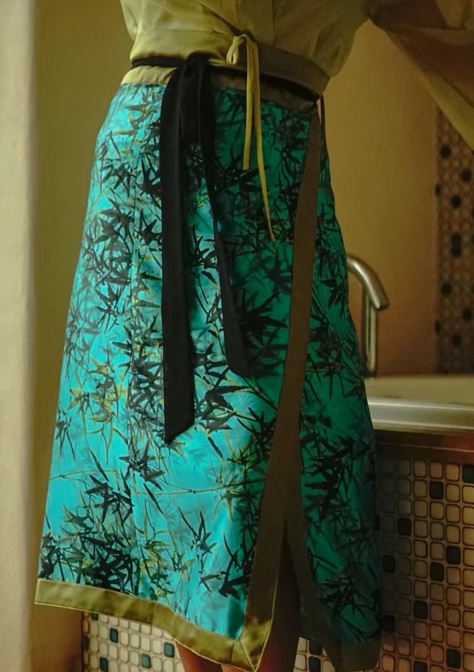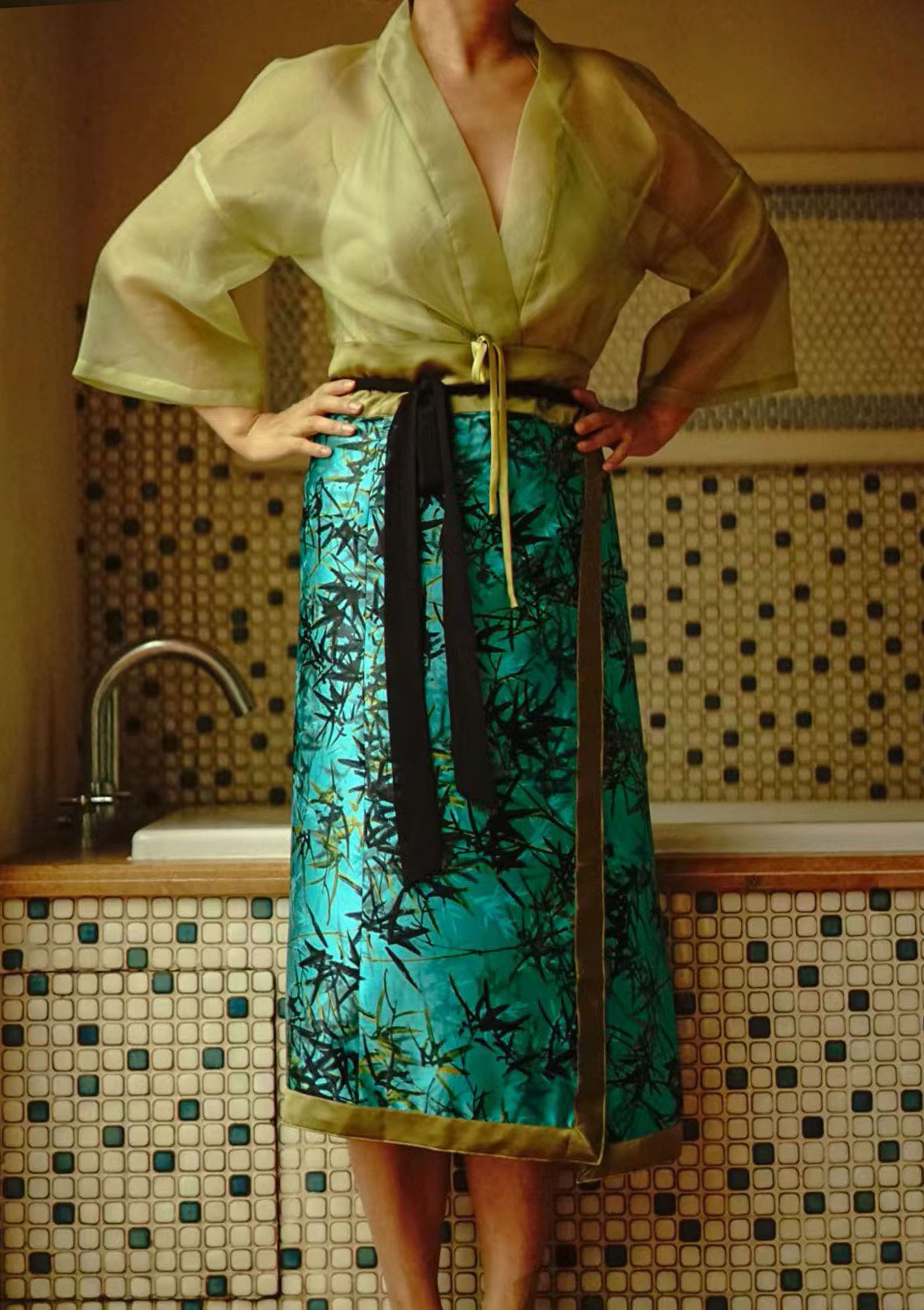 This is a modern two-piece tang dynasty traditional culture inspired set. Tie your ru top round your waist then put top in bottom skirt