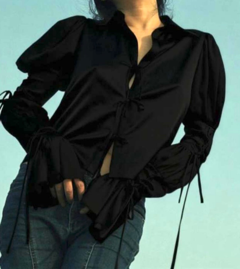 Her Height 172cm/5’8" ,Bust 87cm/34" ,Waist 68cm/27”,Hips 94cm/37” Blouse Length: 62cm/24 inches