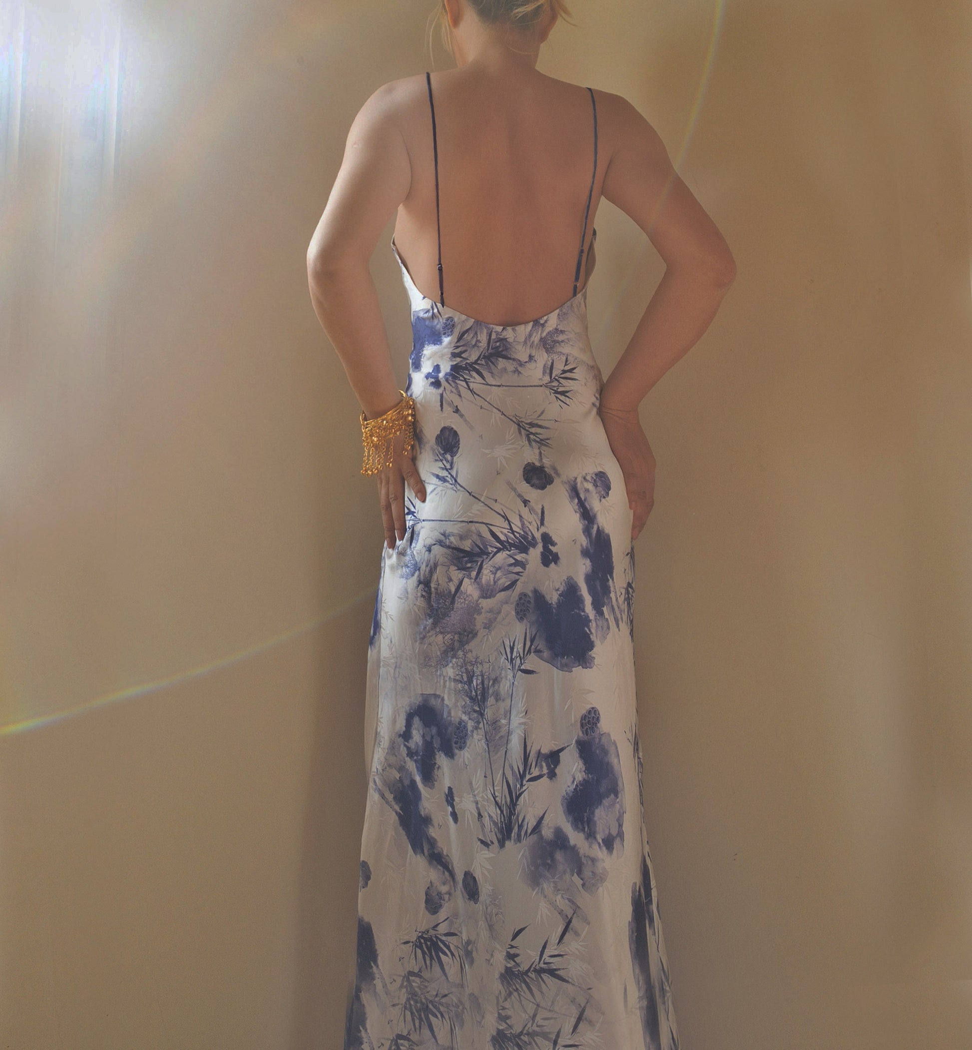 Named for and infused with the ethereal spirit of Fleetwood Mac's timeless classic, the ‘Rhiannon’ gown is a tribute to effortless elegance and captivating movement. Crafted from the softest 19 momme mulberry silk fabric, it achieves a perfect, windswept drape that flows freely around the wearer.