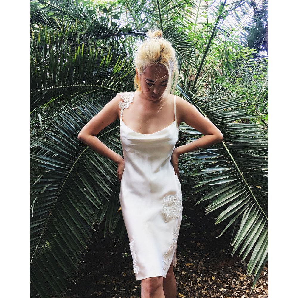 SAMPLE SALE * White Embroidery Mulberry Silk Dress